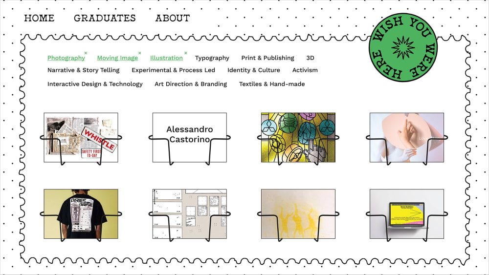 The team would like add that “ Wish You Were Here was made possible by Max Kohler, who coded our website. It is an exhibition initiated, created and funded by the students of Camberwell Graphic Design. "