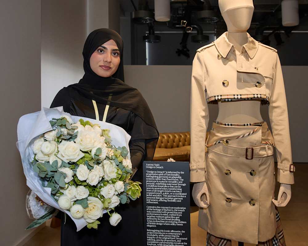 The winning design belonged to Aamna Yasin, BA (Hons) Pattern Cutting student, who received a cash prize and will join Burberry’s design team for an internship later this year. Reflecting on her win, Aamna shared: