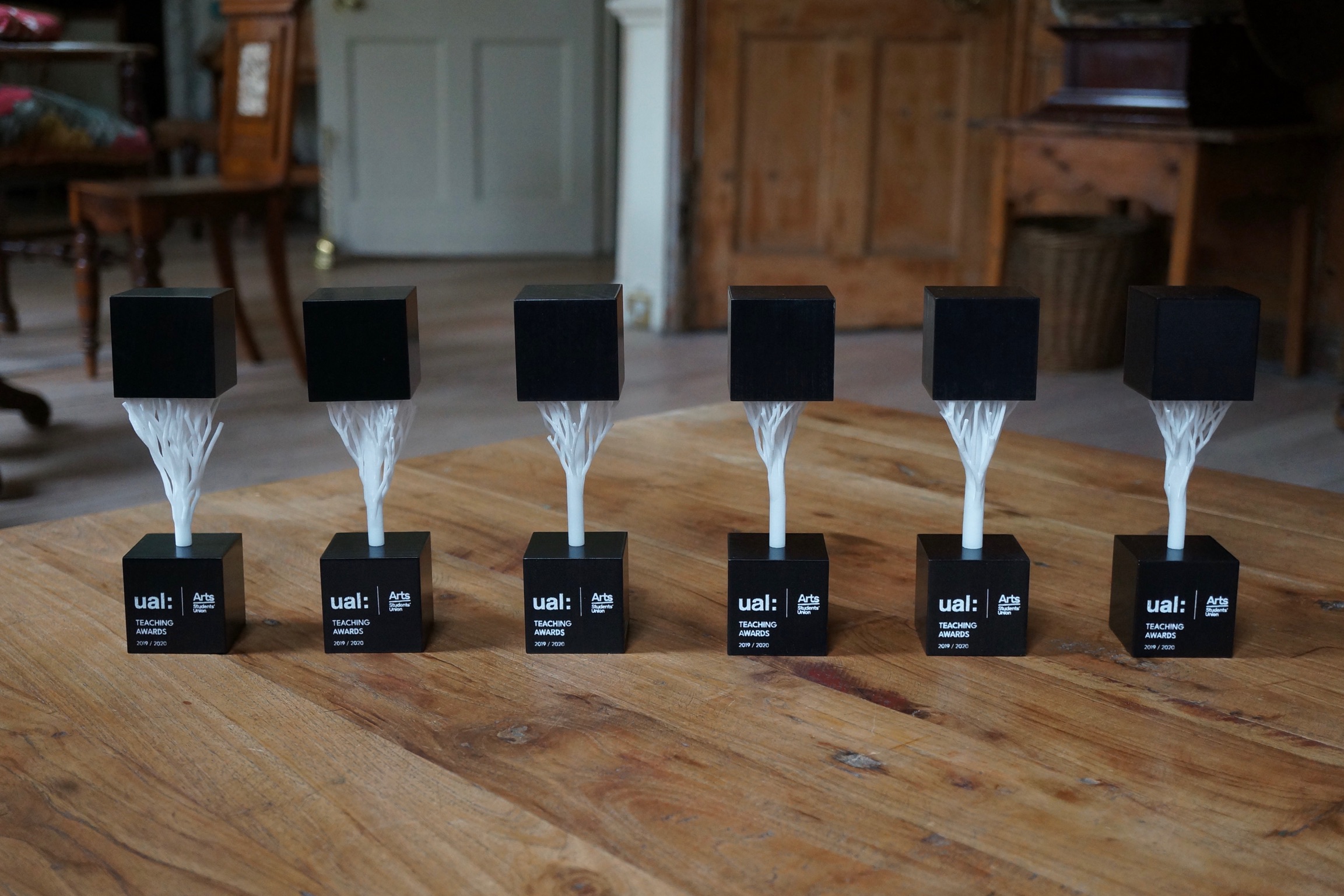 Each year, we commission a student to design and make the trophies for the awards. This year, the trophies (images below) were made by Yoji Caird, BA (Hons) Product and Industrial Design, CSM. The trophies are currently being stored securely, and arrangements are being made for them to be available for collection when feasible.