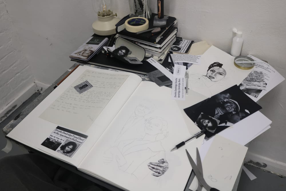 In her work, Stephanie focuses on the stories of women who are often overlooked because their lives and contributions are frequently overshadowed by those of their male partners. Within the 'Dottie' exhibit, she specifically explores the life of Dorothy Dandridge.