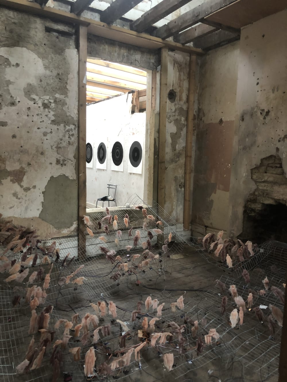 The choice of venue was key and very early on in the process, we decided on the Safehouse. A semi-derelict Victorian terrace in SE15, with peeling plaster and exposed beams, this atmospheric space is full of the traces of previous inhabitants and events. Thus the exhibition space came with a tactility all of its own, the opposite of a white cube environment.
