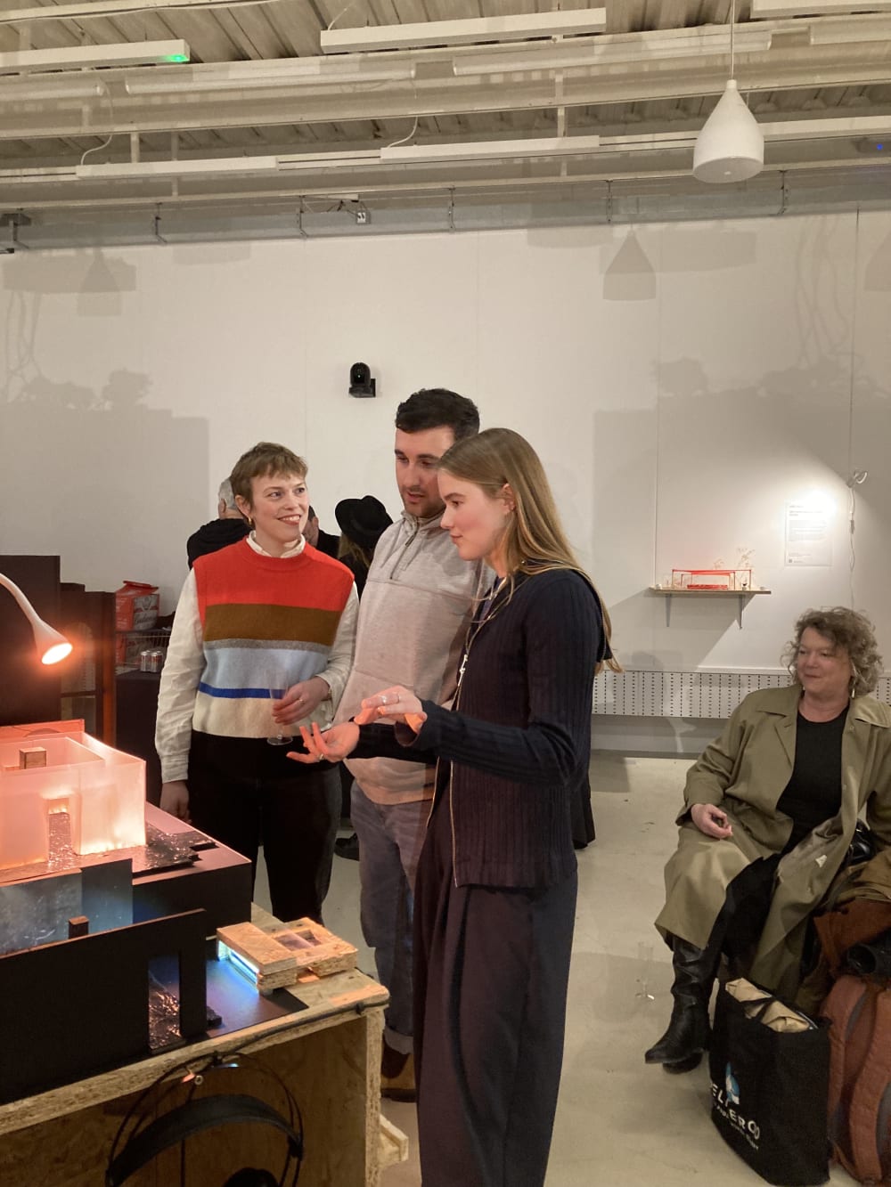 Lucie created this immersive experience accompanied by an adaptation of Rebecca Tamás’ poem 'Witch Europe' for The Ditch in Shoreditch Town Hall. Her work invites the spectator to walk into a rectangular space divided into three areas, separated by white translucent walls. The audience walks and stands on a pitch-black oil slick floor offering an intriguing interpretation of our own involvement and connection within a capitalist society – something that is undoubtedly challenging to shake off the soles of our shoes. My imagination directly sparked and saw imaginative traces of this piece dragged through the streets of Shoreditch with the audience's shoes.